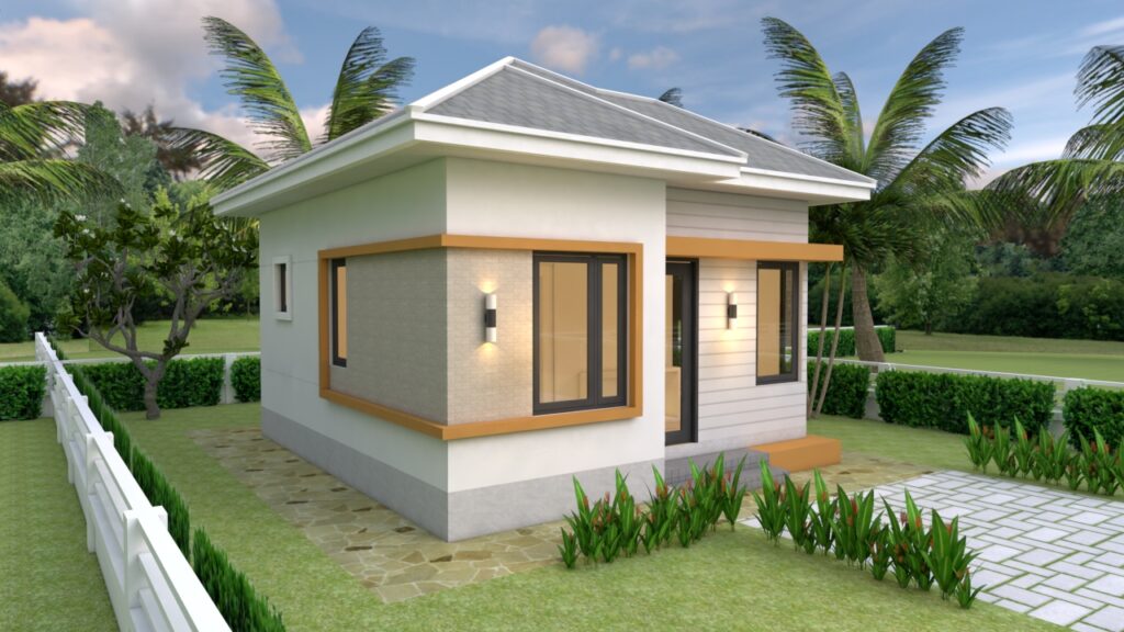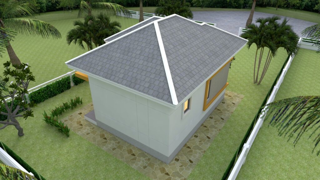 Descargar Planos de diseño de casa pequeña 5×6 metros con techo a cuatro aguas de un dormitorio